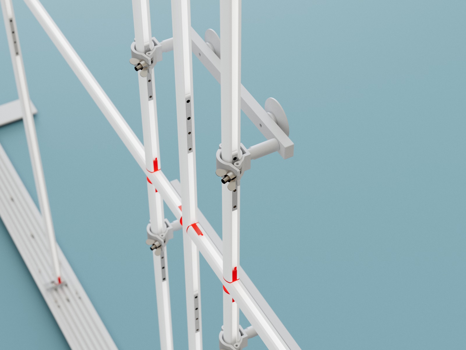 TV Tense fungiert als ergänzendes Stabilisierungselement für TV-Halterungen, insbesondere bei größeren oder schwereren Bildschirmen. Durch die sichere Verbindung mit der Rahmenstruktur und die individuell einstellbare Kabelspannung verhindert TV Tense zuverlässig ein Kippen oder unerwünschte Bewegungen des Monitors. Es sorgt für zusätzliche Standfestigkeit – besonders dann, wenn Displays frei im Raum montiert oder höher positioniert werden. So bleiben auch anspruchsvolle Setups sicher und professionell im Auftritt.