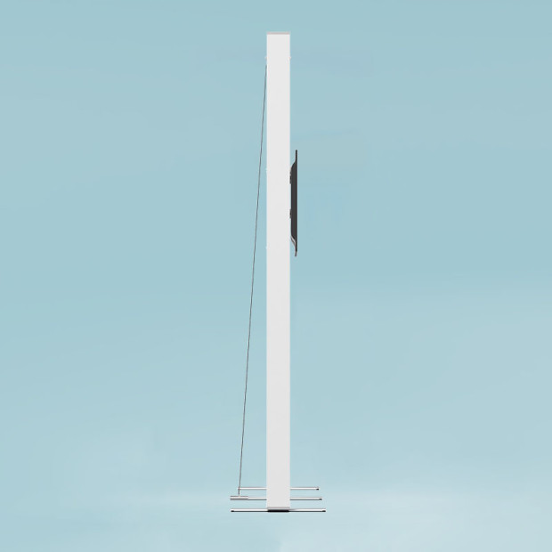 Sie entnehmen die Teile dem praktischen ABS-Tragekoffer, bauen den zerlegten Rahmen vor Ort ohne Werkzeuge auf, verbinden ihn mit dem Stecktransformator und der DC-Buchse, und schon ist Ihr Display einsatzbereit.