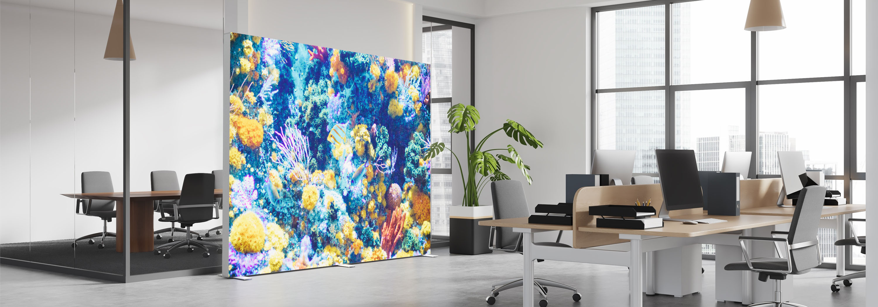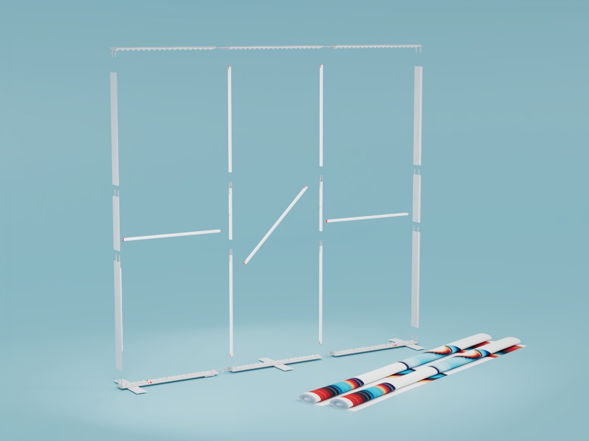 Einsetzbar als Rückwand, Raumteiler, im Showroom, bei Events oder auf der Messe.