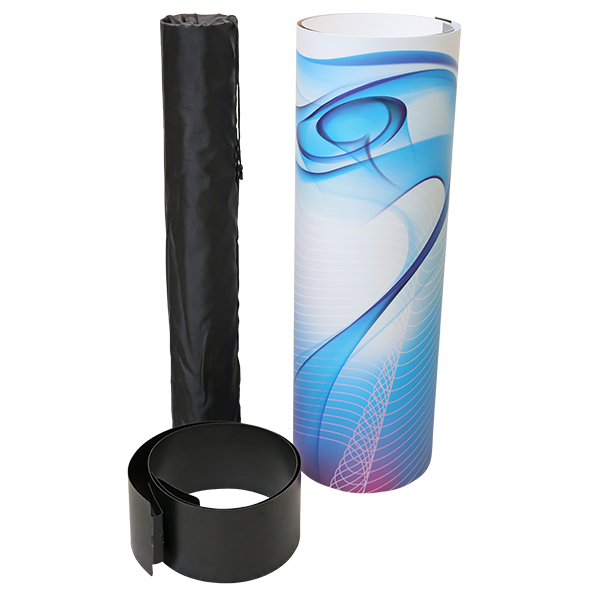 DIe expo-case Theke ist einfach aufzubauen. Einfach öffnen und die Tischplatte und die Ablagen hinzufügen. Befestigen Sie das Grafikpanel mit Klettverschluss und der Tresen ist einsatzbereit.