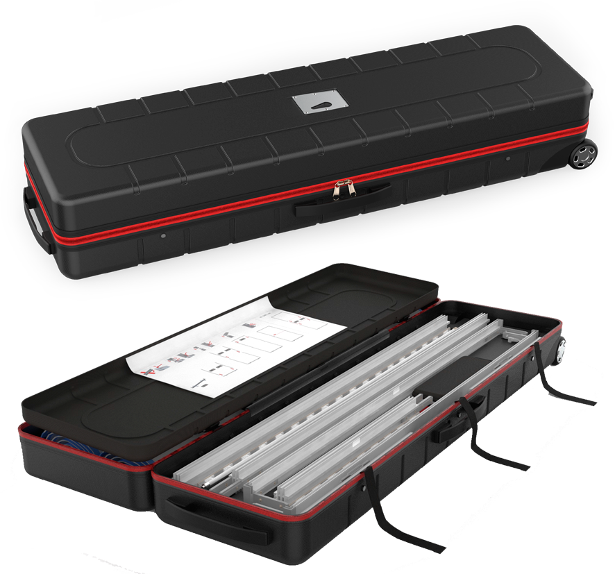 Der LEDUP® Battery wird in einem leichten Transportkoffer aus langlebigem ABS geliefert. Der wasserabweisende Hartschalenkoffer aus ABS ist stoß- und kratzfest und verfügt über hochwertige, robuste Reißverschlüsse. Leichtgängige Rollen mit Gummibeschichtung und stabile Griffe an drei Seiten sorgen für einen einfachen Transport.