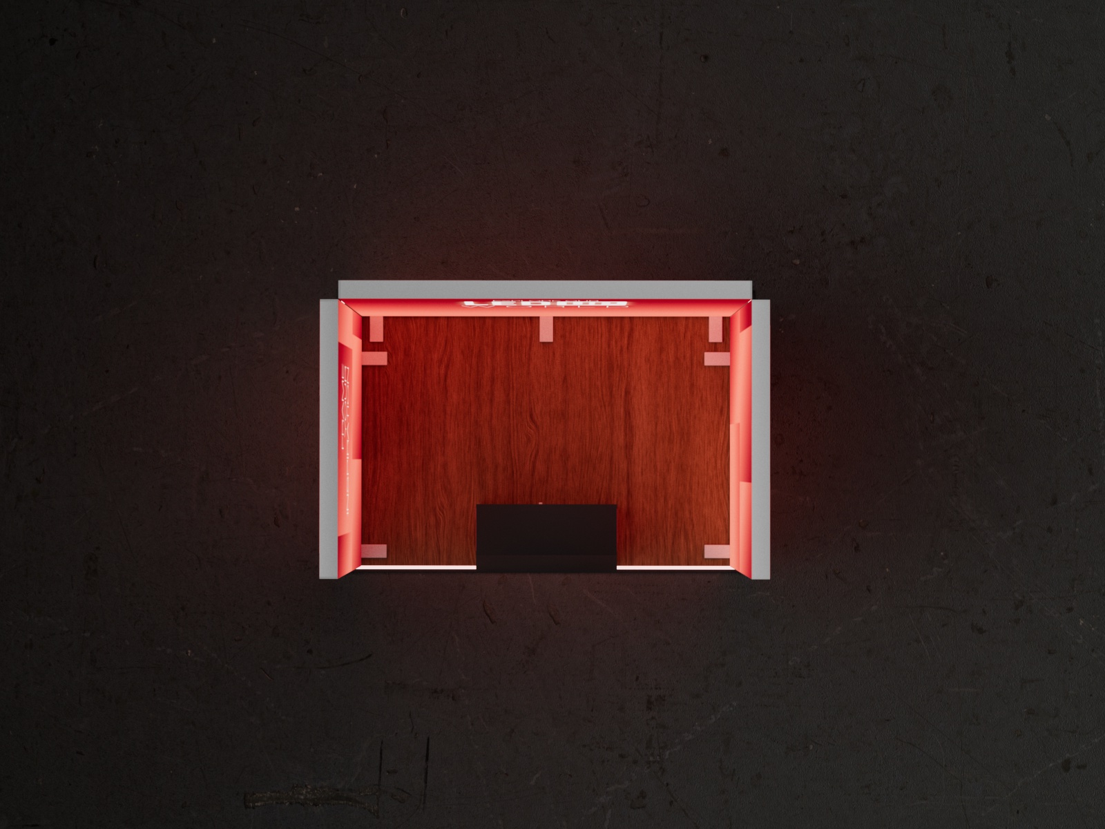 Dieses Set ist mit einer Grundfläche von 2x3 m und einer Höhe von 248 cm, sowie einem Counter ONE, eine kompakte Lösung für eine wirkungsvolle Präsentation.