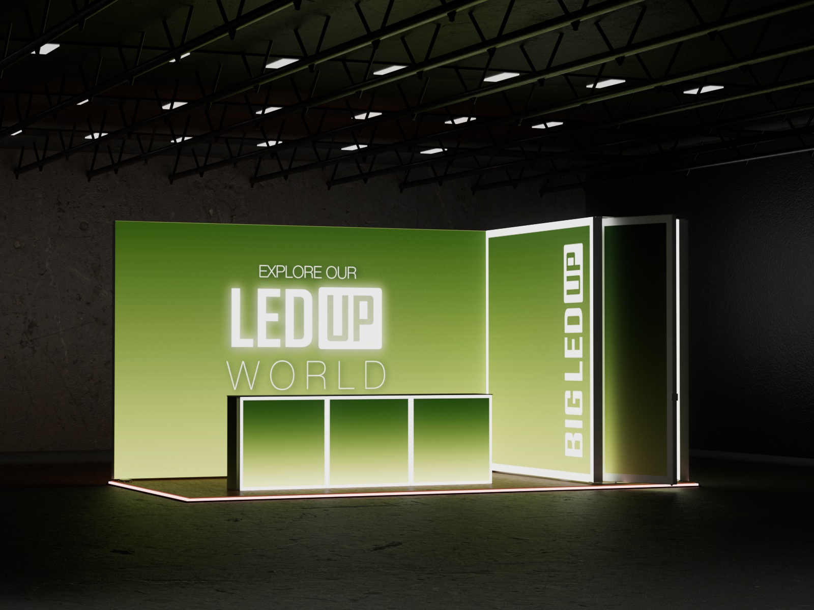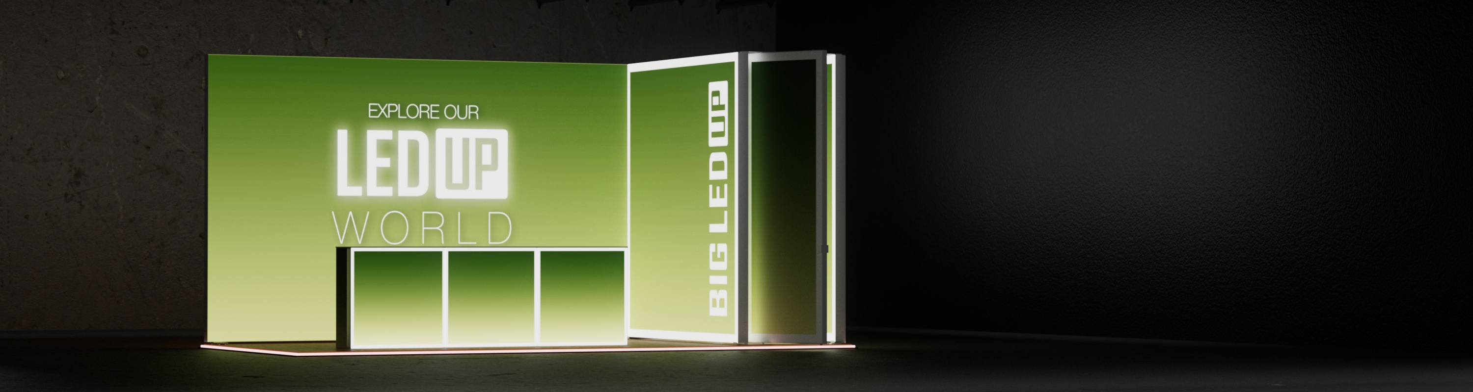 Dieses Set ist mit einer Grundfläche von 6x3 m und einer Höhe von 298 cm, sowie drei Counter ONE und einer Koje, ist die für diejenigen gedacht, die einen beeindruckenden und professionellen Messestand benötigen. Dieses modulare Set bietet maximale Flexibilität und ermöglicht es Ihnen, den Aufbau an Ihre spezifischen Event-Anforderungen anzupassen. Ob für Messen, Konferenzen oder jede andere Promotion-Veranstaltung – das BIG LEDUP Set 5x3 DEVON sorgt dafür, dass Ihre Marke durch Klarheit und Stil hervorsticht.
