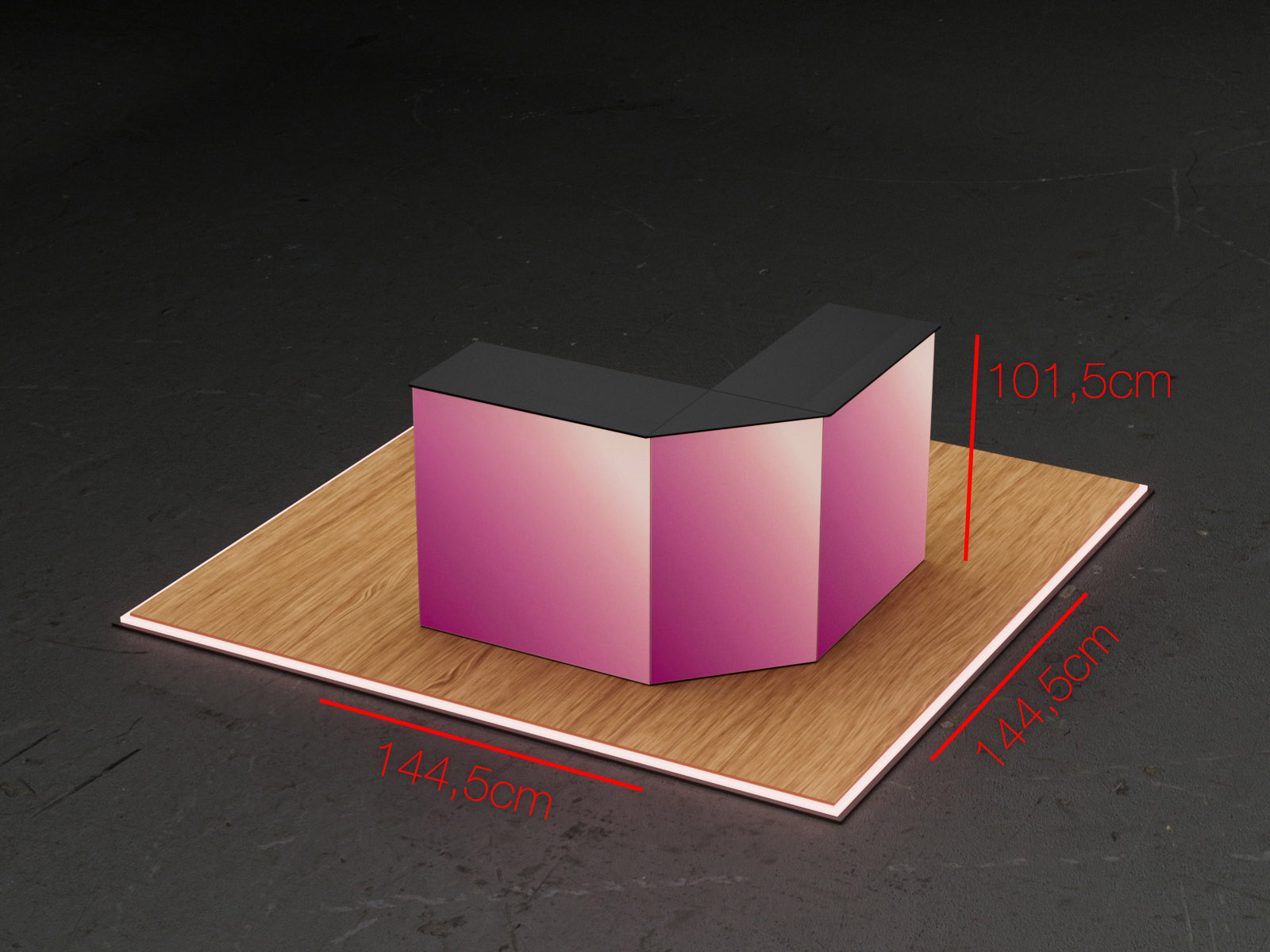 Das COUNTER LUCIA Set kombiniert zwei beleuchtete COUNTER ONE Module mit einem COUNTER ONE CORNER Extension, um eine stilvolle Couter-Ecklösung zu schaffen. Die 90°-Anordnung ermöglicht eine offene, einladende Kommunikation mit Kund:innen – ideal für Promotions, Beratungstheken oder Infopoints mit besonderem Designfaktor.